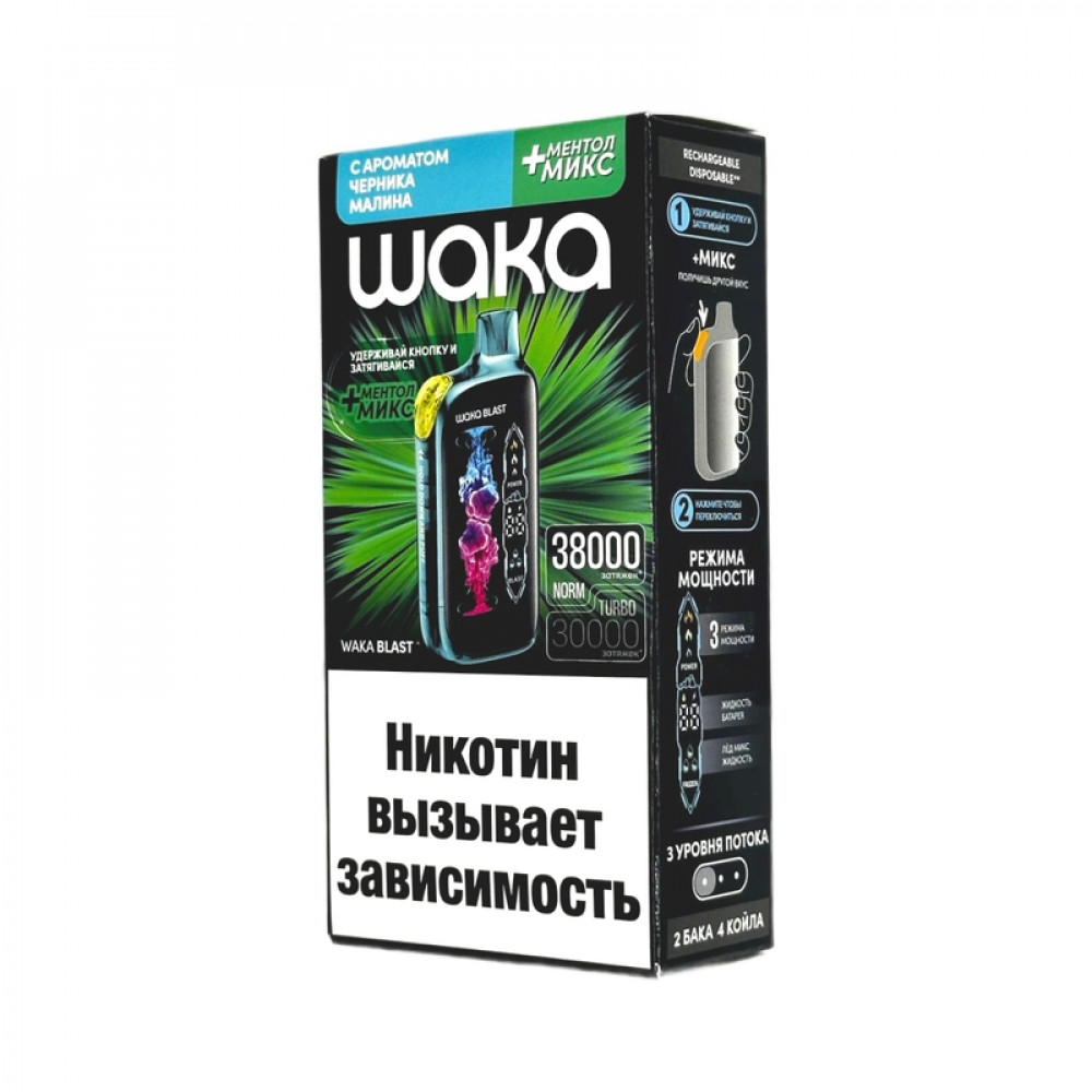 WAKA BLAST 38000 Hard - Черника малина + ментол микс - купить в Нее